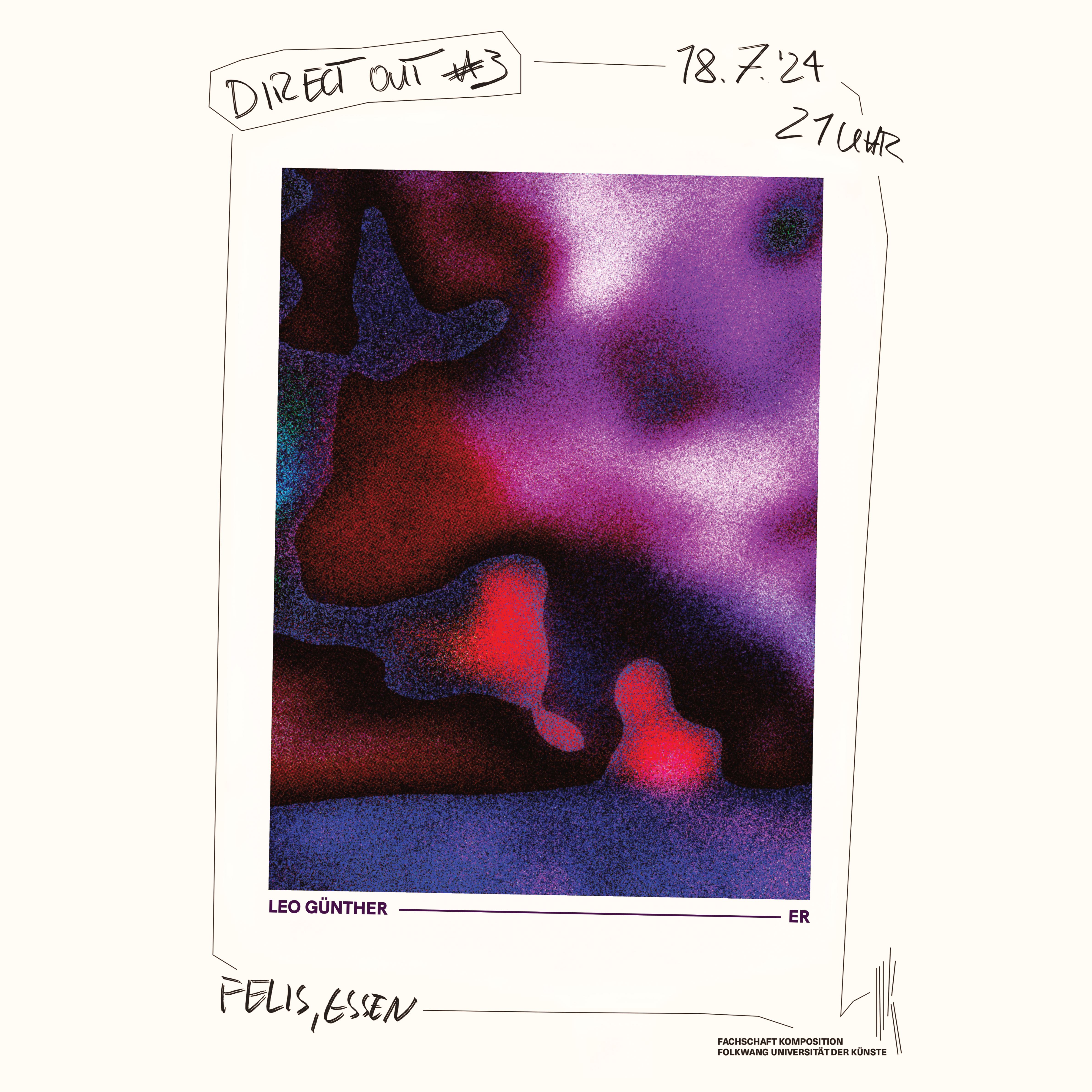 Direct out geht in die dritte Runde! Diesmal mit Konzerten von Leo Günther und dem Duo ER! Wir freuen uns euch bei direct out #3 zu sehen🔥