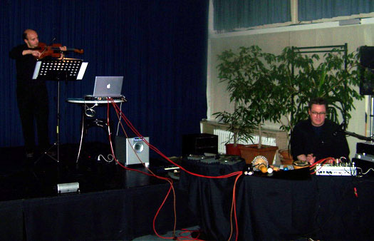 Essen/Folkwang Hochschule - ALTE AULA performing with Thomas Gerwin the piece SAITENSPIEGEL (by Gerwin)